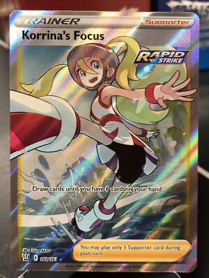 Korrinas Focus 160163 Full Art Trainer Battle Styles Near Mint. Korrinas Focus Full Art 300 SKU. PC0110 Sorry this item is out of stock Share Near Mint.